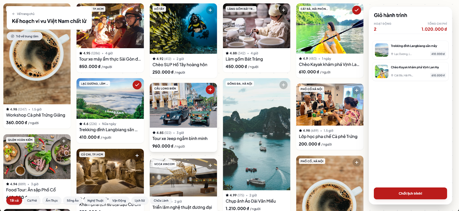 Visit Vietnam은 관광객이 투명하게 정보를 검색하고, 관광 서비스를 평가하며 선택할 수 있도록 합니다. 관광객의 모든 상호작용과 평가는 서비스 품질과 관광 경험을 진정으로 반영하는 가치 있는 행동 데이터 소스를 형성하는 데 기여합니다.