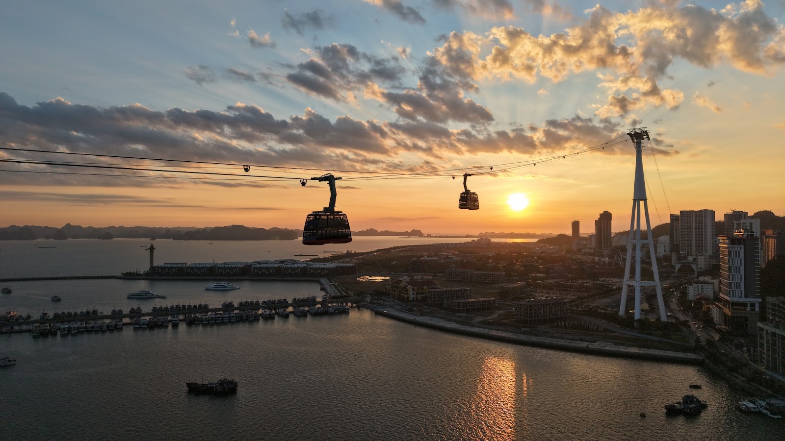 Góc ngắm hoàng hôn từ cáp treo Sun World Ha Long đầy lãng mạn và ấn tượng. (Nguồn: Sưu tầm)