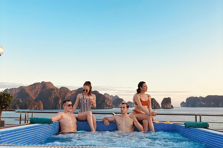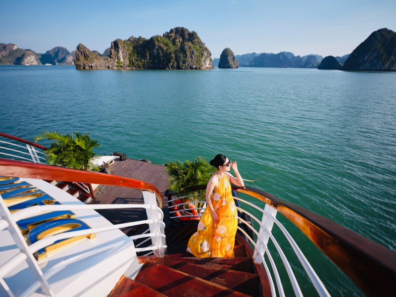 Trải nghiệm nghỉ dưỡng trên du thuyền Hạ Long mang đến cảm giác như sống giữa di sản, nơi du khách vừa thư giãn vừa ngắm trọn biển trời. (Nguồn: Sưu tầm).